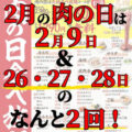 2月は肉の日がいっぱい 2月は2/9と2/26.27.28の計4日、肉の日…