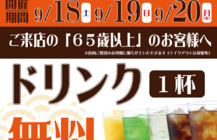 イベントは終了しました -敬老の日- ドリンクサービス ★3日間-開催しま…