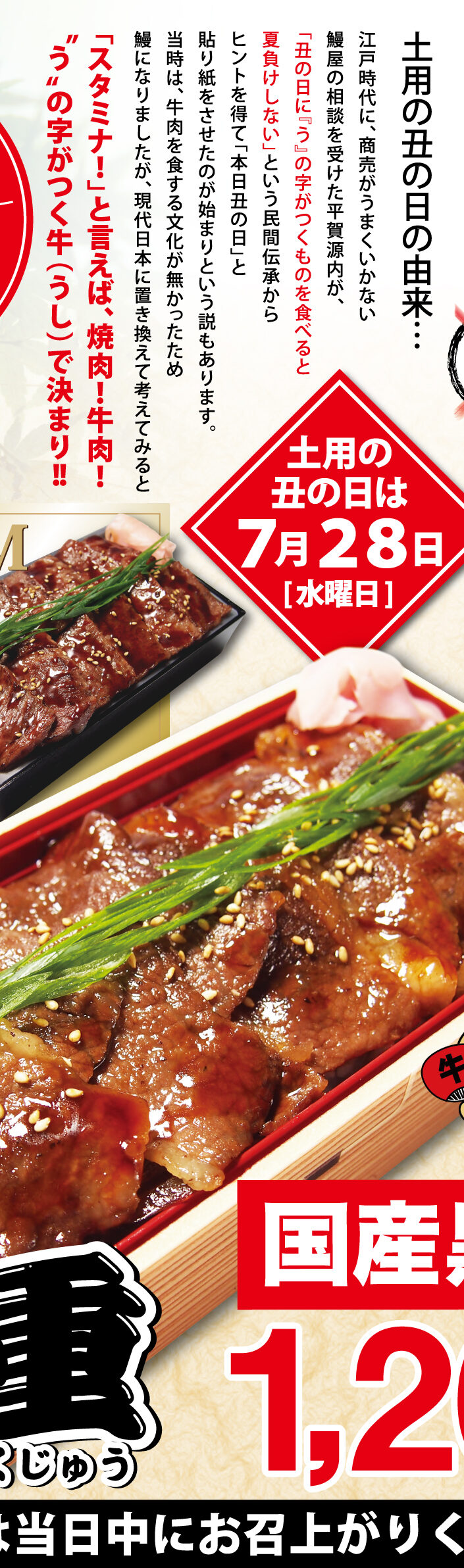 Home 過去イベント 「終了」土用の丑(牛)の日、特製肉重ご予約承り中! 「終了」土用の丑(牛)の日、特製肉重ご予約承り中! 2021.07.7 過去イベント ※販売は終了いたしました 7月25日(日)までご予約承り中! 各店舗にてご希望のお時間にお受取りいただけます。 ※お受取期間:7月21日~7月28日 ※3日前までにご予約お願いします。 Post Share Hatena Pocket RSS feedly Pin it