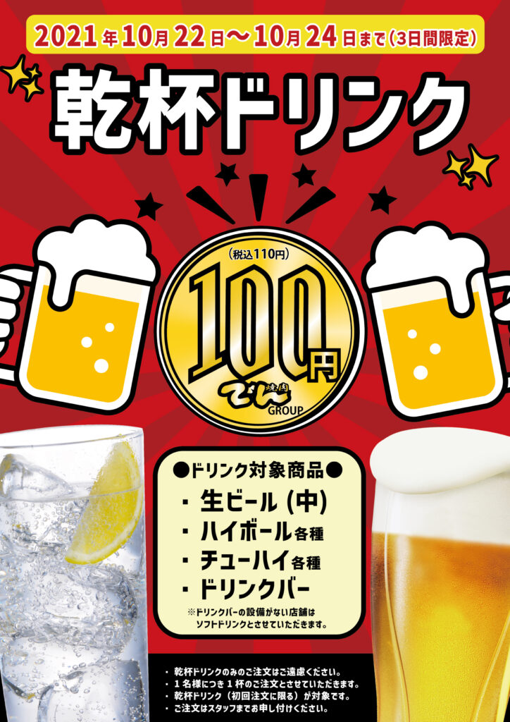 ※乾杯ドリンク(初回注文に限る)が対象です。