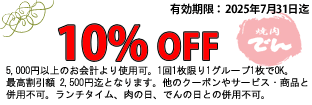 | 【休業中】焼肉でん 相模原陽光台店のみ有効 |