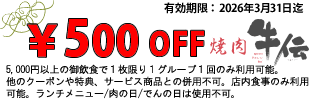 焼肉牛伝 西神中央店のみ有効